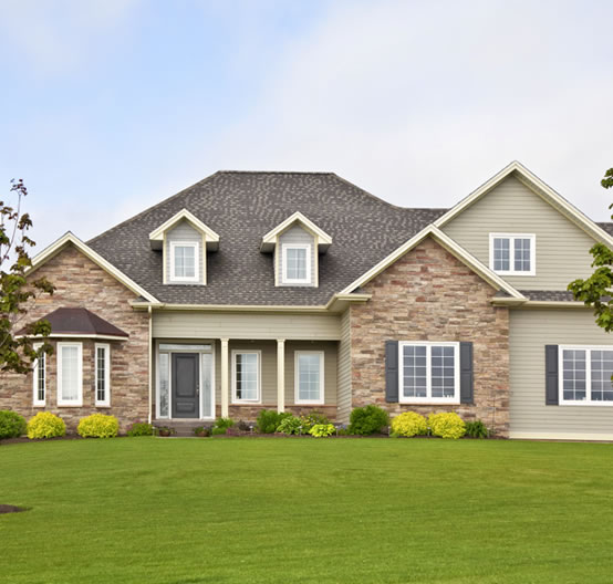This project was providing windows for a new home build. White PVC windows with white internal grilles. The door is a fiberglass wood grain that was stained. The windows were installed into two mediums, siding and brick.