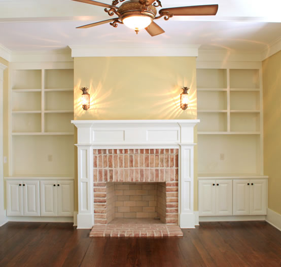 This custom built fireplace was built and sprayed using smooth white lacquer on a framed construction with RS 6901 Doors. We construct entertainment centres and will work with your components to provide proper spacing and cord management.